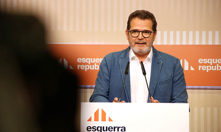 El portaveu d’ERC, Isaac Albert, en roda de premsa a la seu del partit [Foto: ACN / Bernat Vilaró]