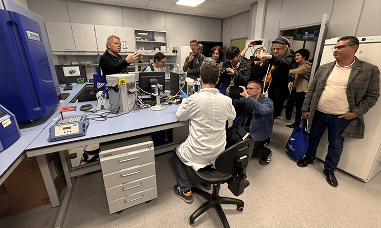 Una de les visites dels periodistes estrangers en un centre de recerca català [Foto: Catalunya Internacional]