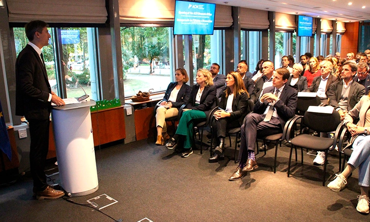 Jordi Solé, nou cap de l’oficina de l’ACM a Brussel·les, durant la seva intervenció [Foto: ACM]