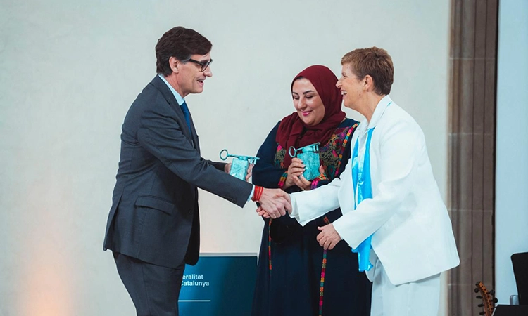 El president Illa lliura el 37è Premi Internacional Catalunya a Yael Admi i Reem Alhajajra [Foto: Arnau Carbonell]