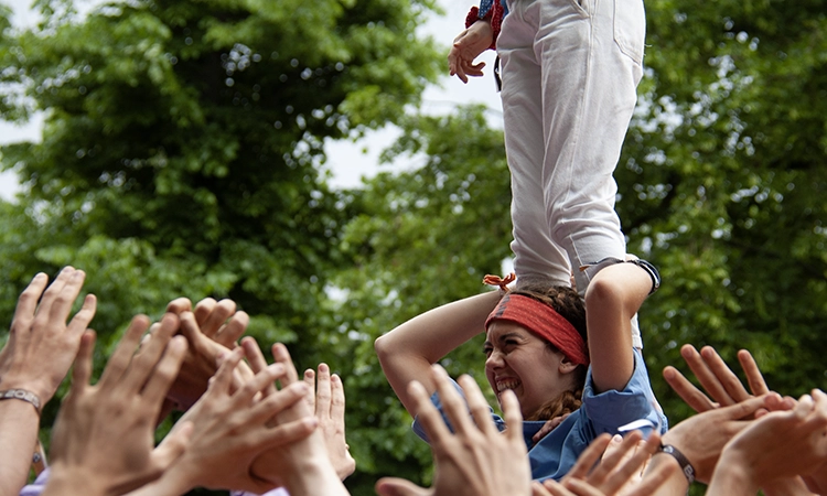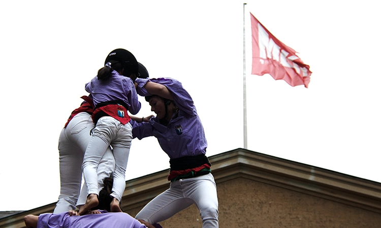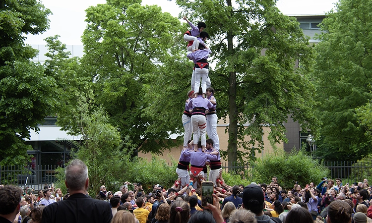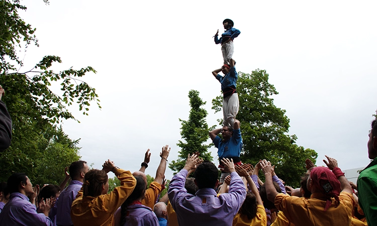 Vista l’afinitat que es tenen, em sorprèn saber que els sis-cents castellers que hi participen es van veure les cares per primera vegada el dia anterior, durant l’assaig general. En Thomas, l’únic representant de la colla de Montreal, al Canadà, va trobar l’esdeveniment via xarxes socials i va decidir venir des de l’altre cantó de l’oceà per poder poder sumar-s’hi. Així és com aquest canadenc va aprendre a parlar català: fent castells a Montreal durant més d’una dècada. “Quan s’exporta la cultura, la cultura no es perd, la cultura es millora”, assenyala.