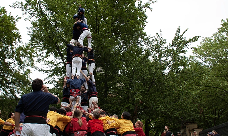 En acabar els deu pilars d’entrada, les colles es van dividir en tres grups per fer rondes de castells simultanis. Les colles, que carregaven i descarregaven sense parar al so de gralles i tabals, s’aplaudien les unes a les altres amb molt de fervor. “A diferència de Catalunya, les colles internacionals fomenten molt més aquest sentit de comunitat”–diu Joan, casteller de la colla de Lausana. Les colles s’ajudaven mutuament a construir castells que, d’altra manera, no haurien pogut carregar. La de Berlín, per exemple, va poder fer el seu primer 3 de 6, gràcies a gent d’altres colles que s’hi va afegir a fer pinya.
