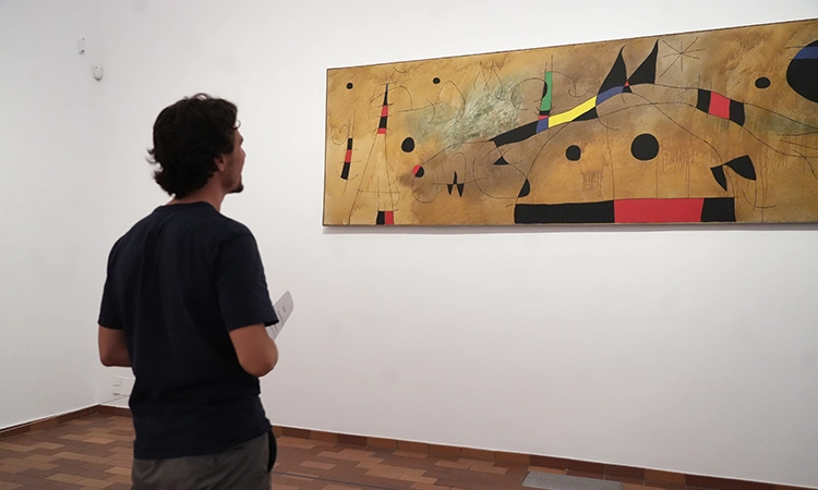 Una persona contempla una obra de Joan Miró dins de l’exposició ‘Miró i els Estats Units’ [Foto: Eli Don / ACN]