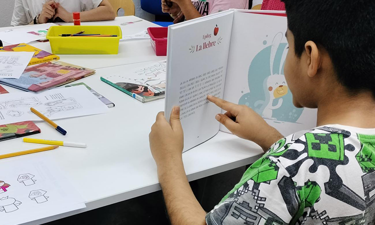 Un infant llegint un conte en català [Foto: Ibby cat]